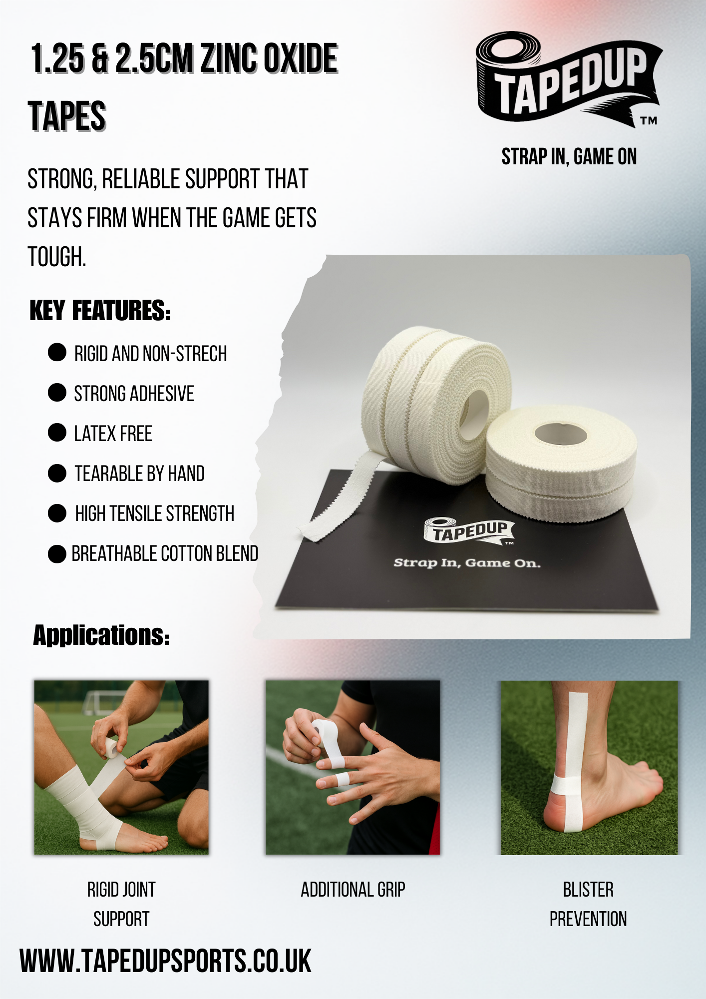 Our 2.5cm Zinc Oxide Tape is built for precision strapping and maximum support where it matters most. Designed for athletes who need firm, reliable stability without bulk, this narrower width is perfect for fingers, wrists, thumbs and detailed joint work.