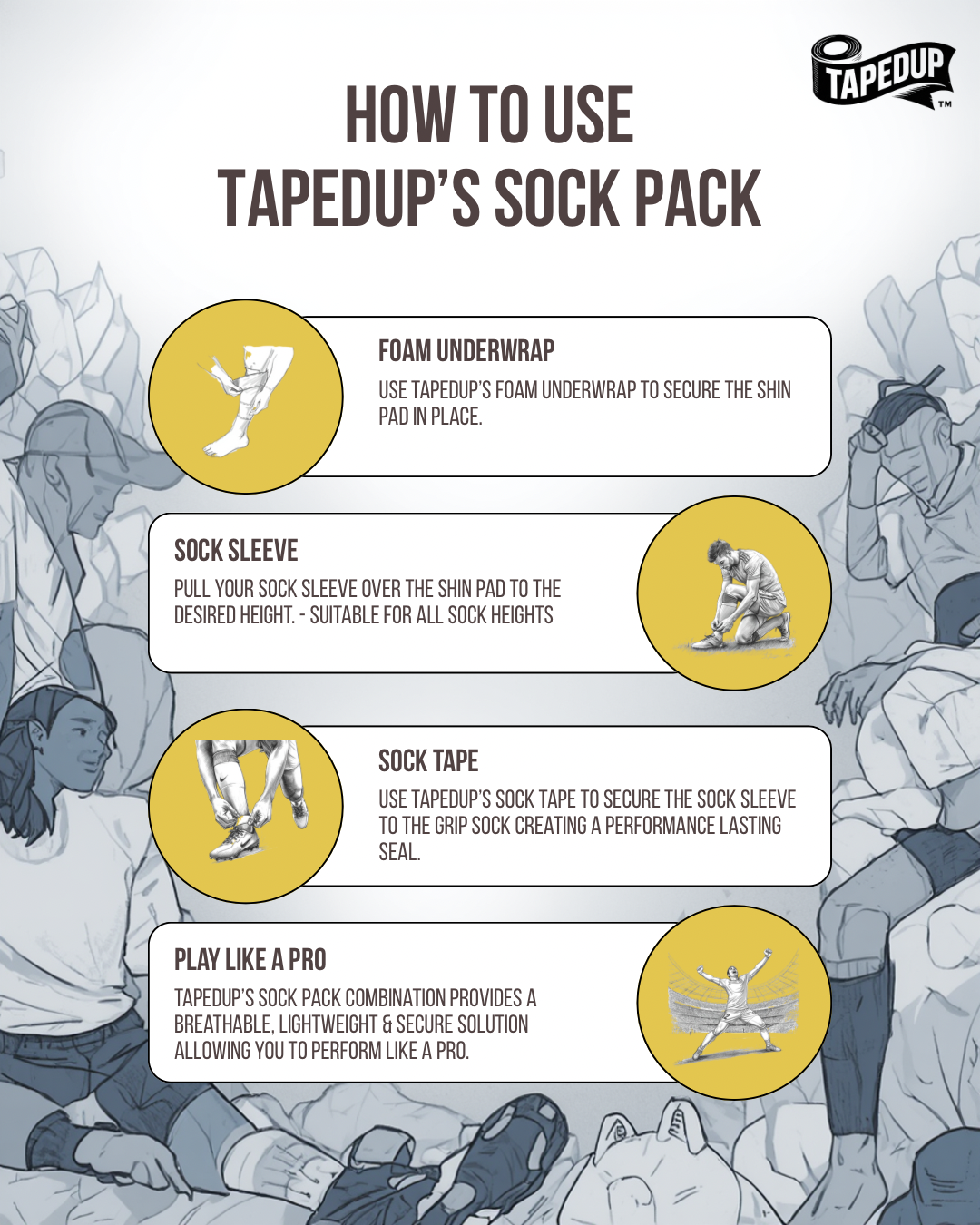 Take your matchday prep to the next level with the Taped Up Sock Pack – the all-in-one solution for secure, comfortable, and professional sock and shin pad fixing.